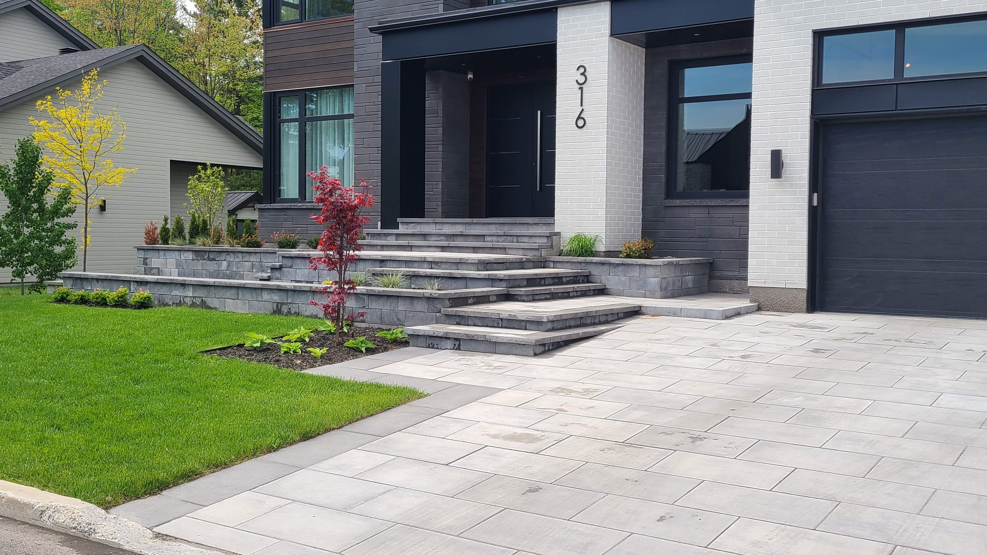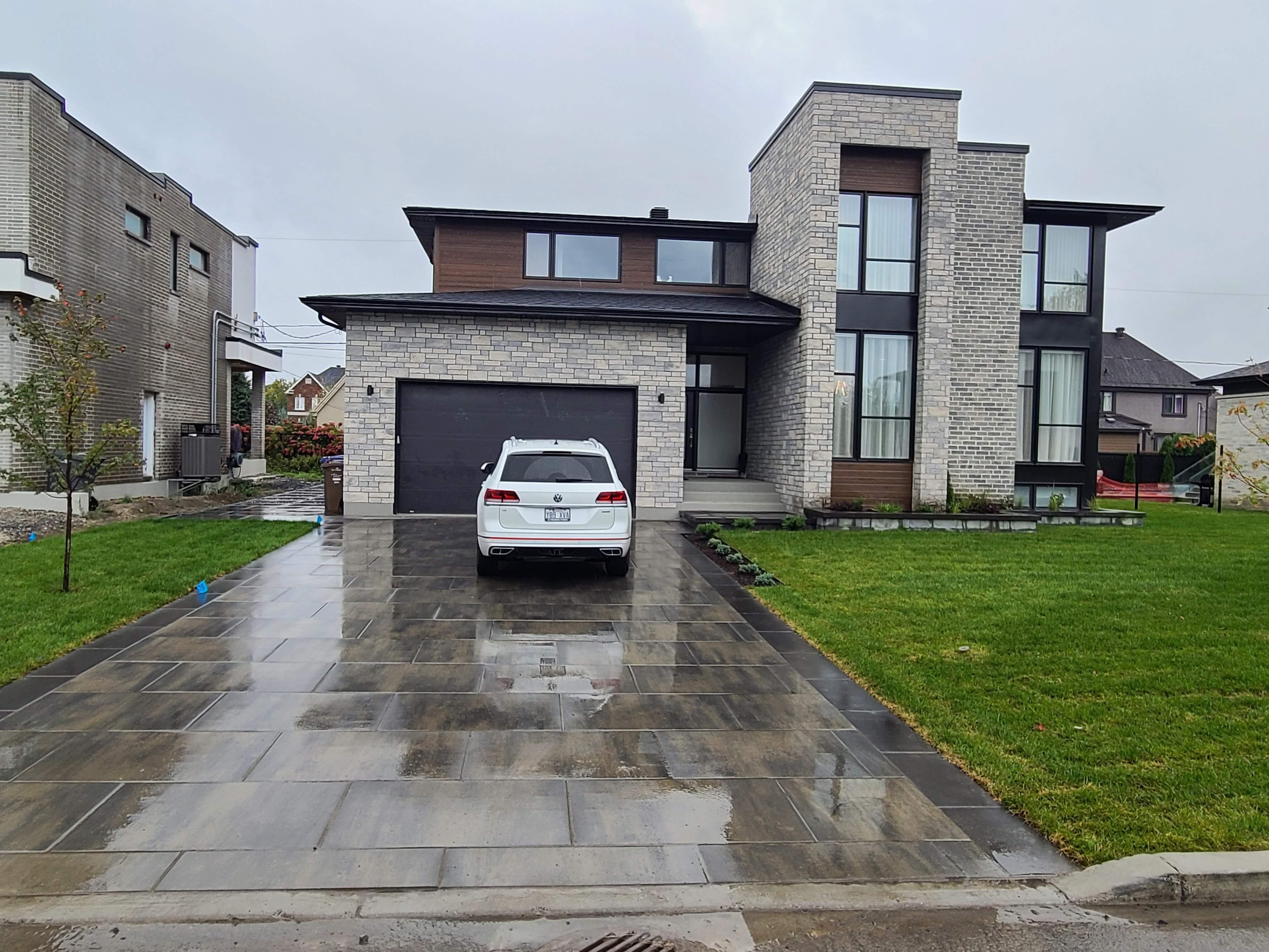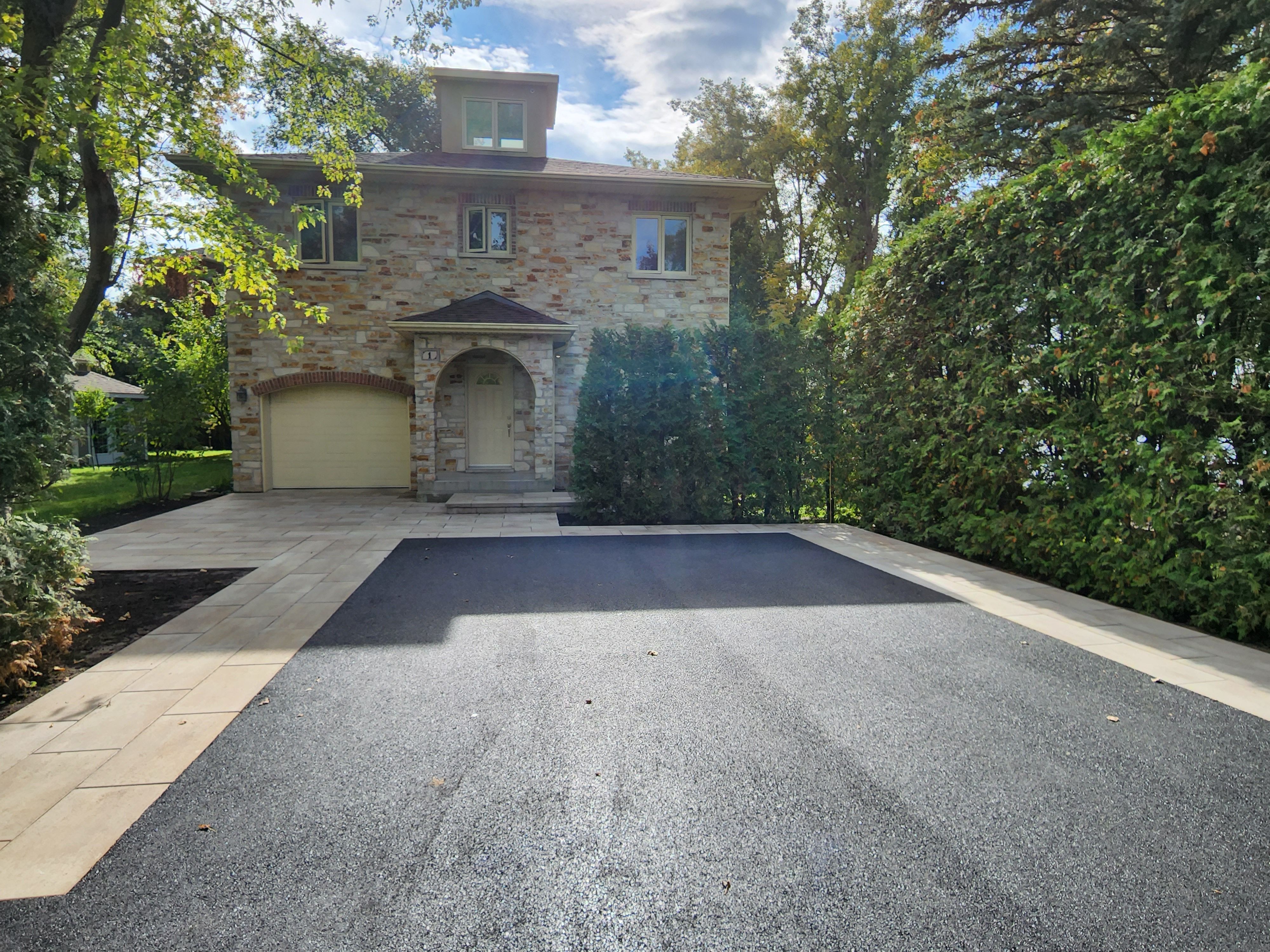 Une entrée de stationnement asphaltée est très pratique, une cour de stationnement en pavé uni se fait toujours remarquée.