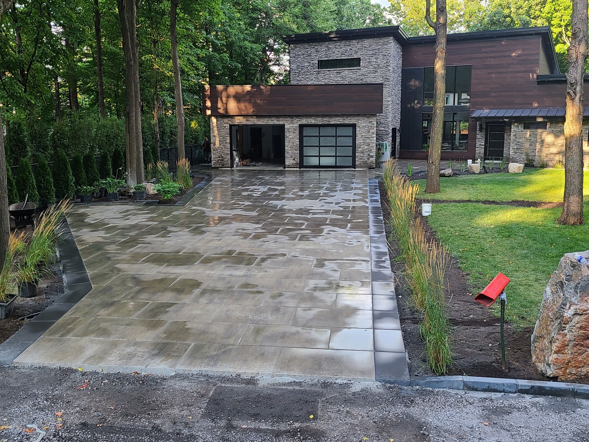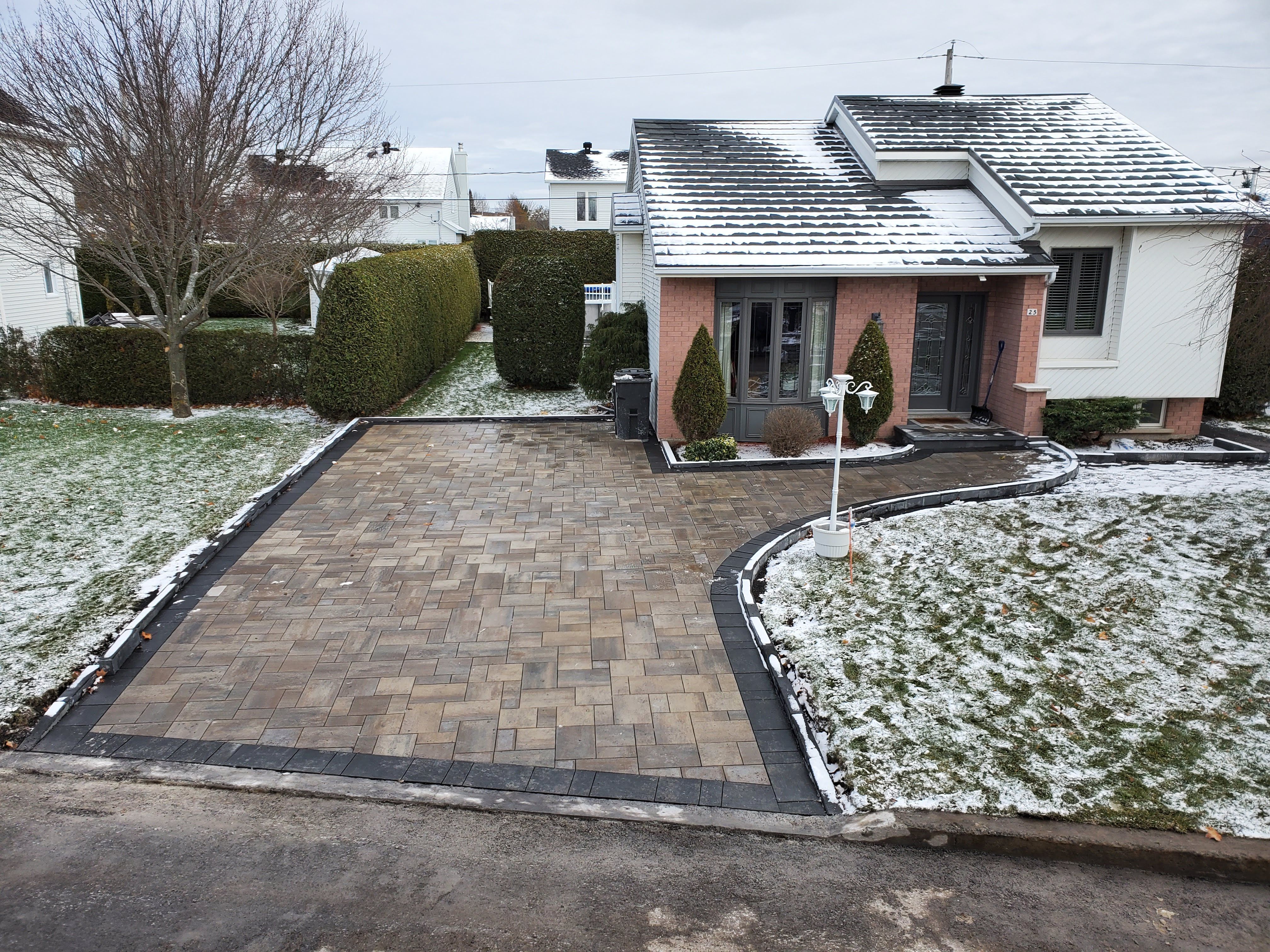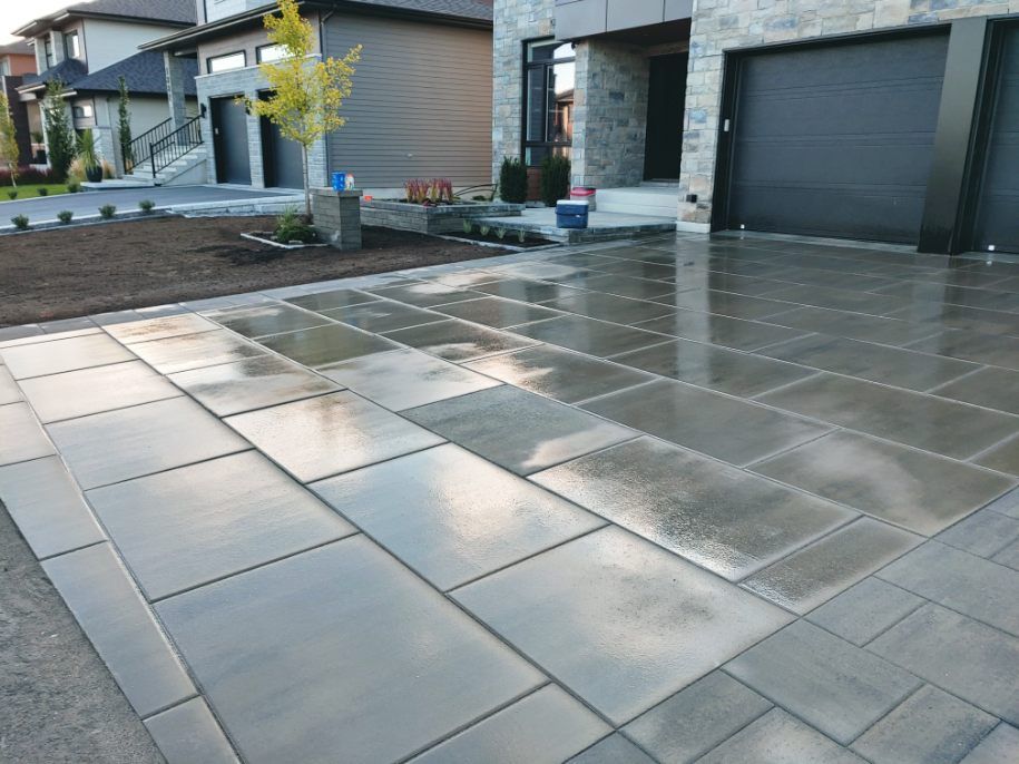 Une entrée de stationnement asphaltée est très pratique, une cour de stationnement en pavé uni se fait toujours remarquée.