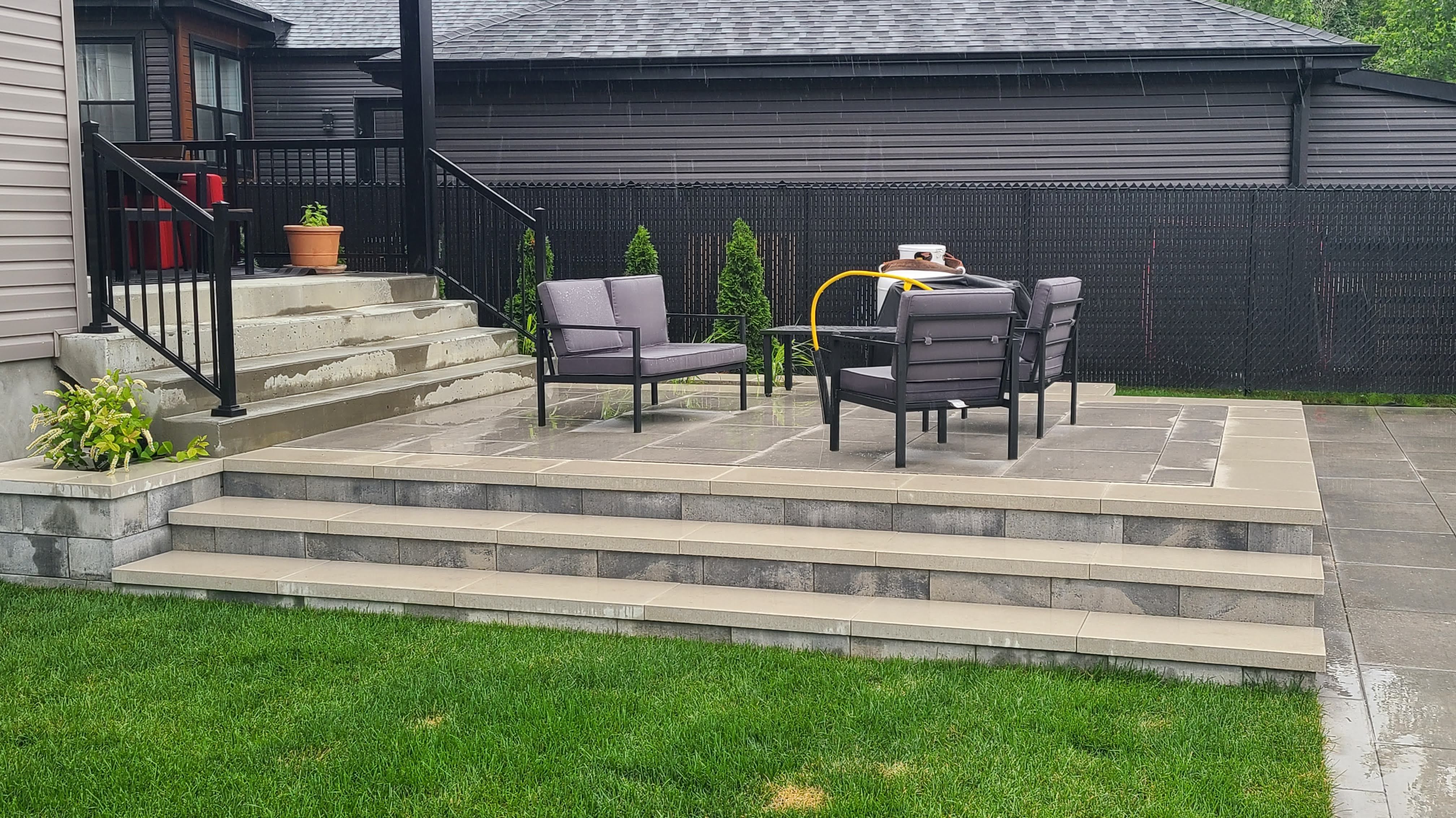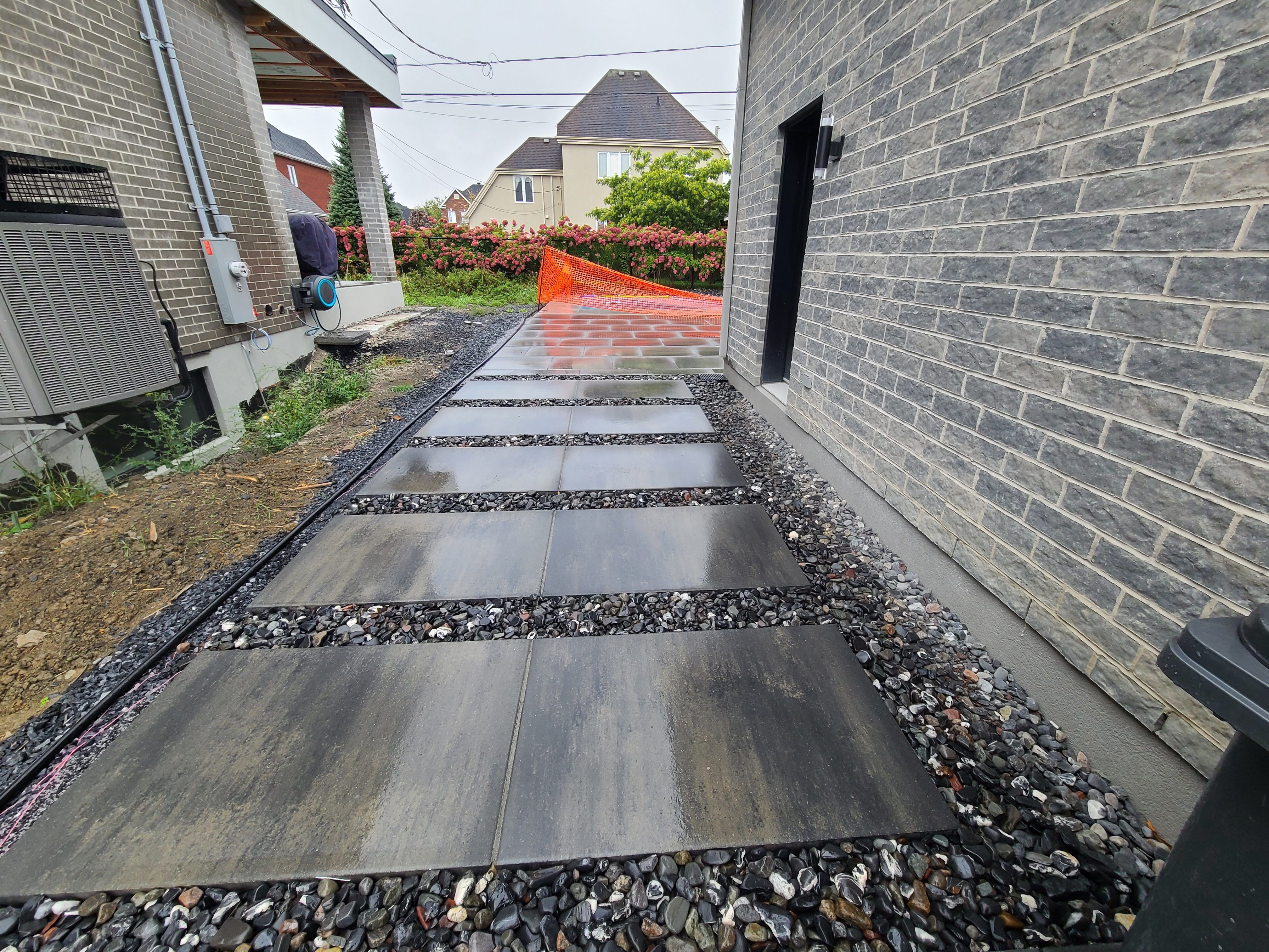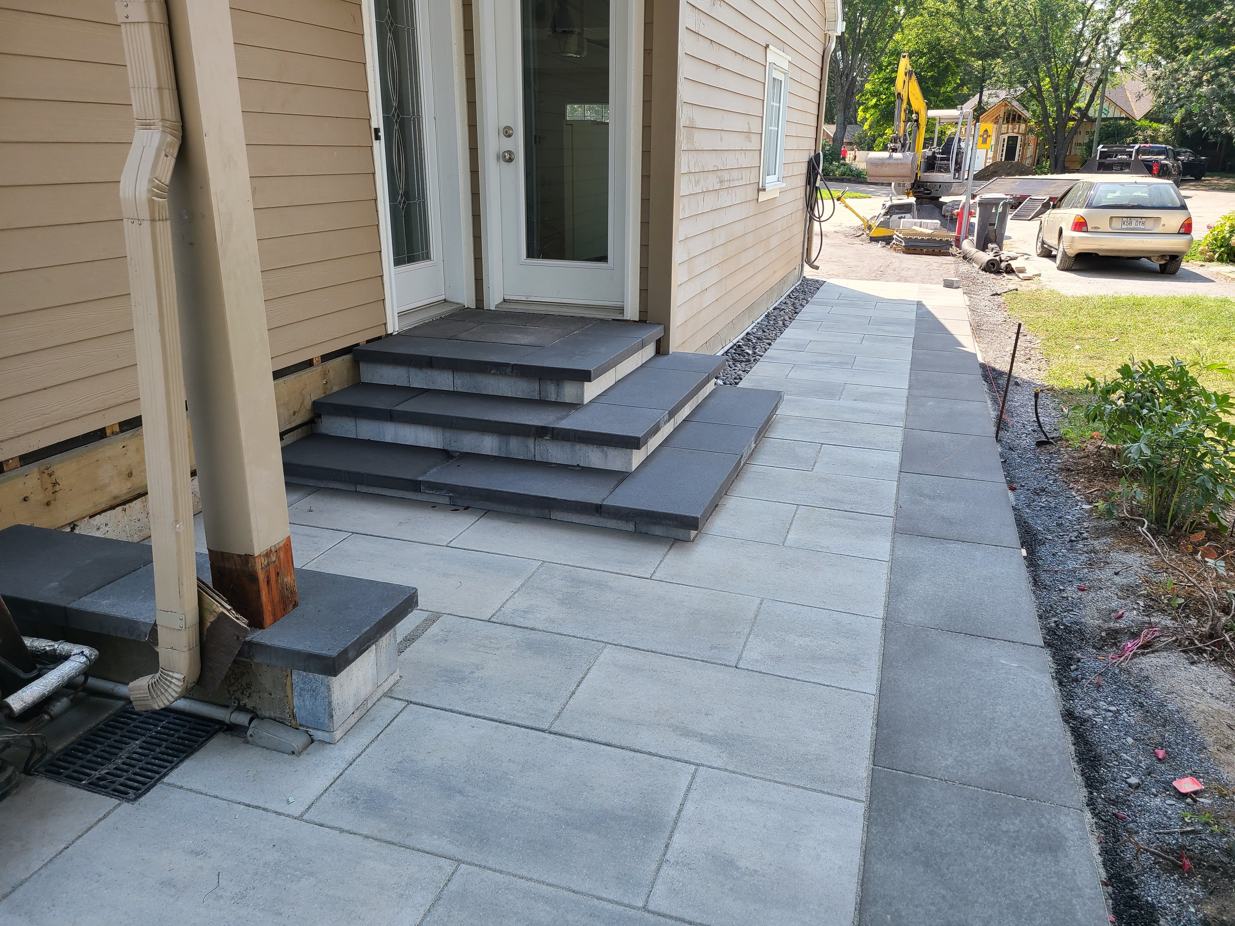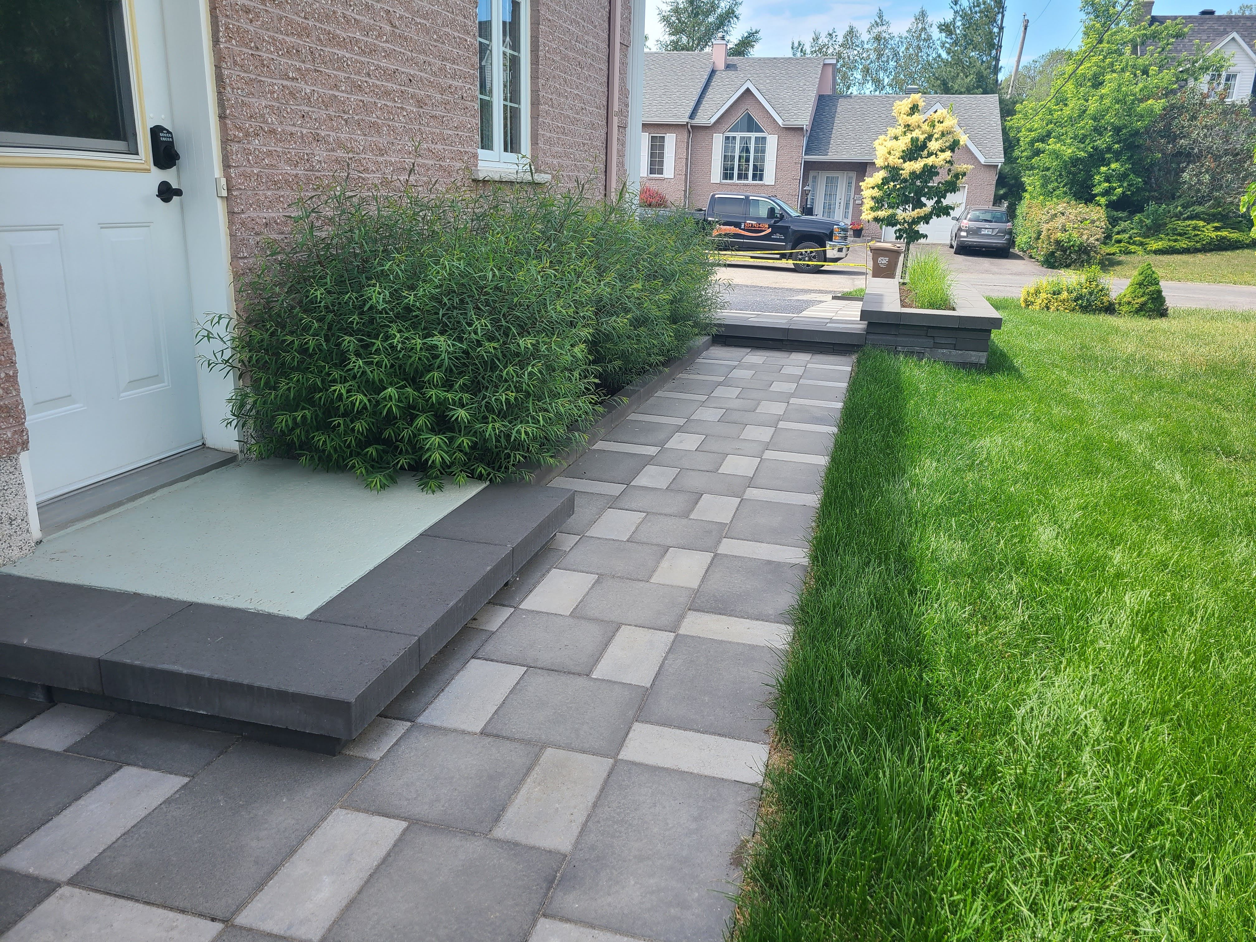 Que ce soit pour un trottoir qui longe la maison ou un balcon qui rehausse l'apparence de votre entrée, Aménagement Régimbald saura le réaliser